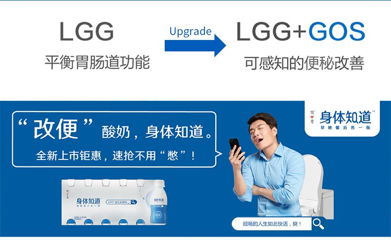 图片来源:简爱酸奶官网 不同于以养乐多为代表的乳酸菌饮料,身体知道系列由生牛乳发酵制成,是大陆率先使用明星益生菌LGG菌的酸奶产品,能平衡肠道微环境,改善便秘,恢复肠胃健康。在3年内占据了15%的高端酸奶市场[6]。
