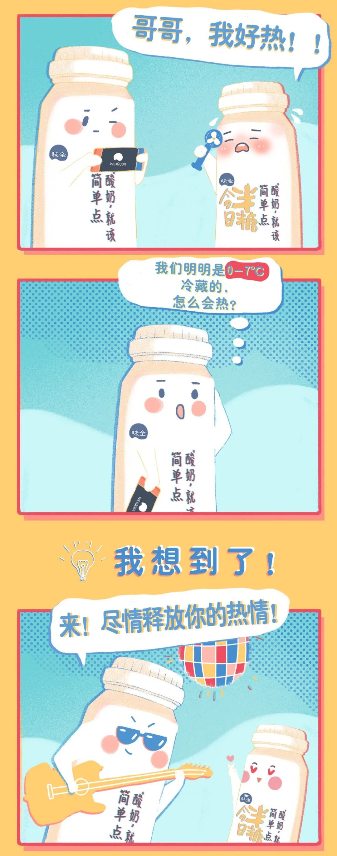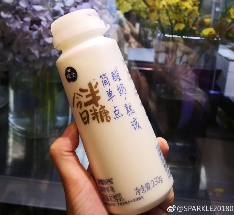 图片来源:简爱酸奶官网 味全推出的“酸奶,就该简单点”系列,只含生牛乳、乳酸菌、乳清蛋白粉和白砂糖,全新上市的半糖酸奶将含糖量减少了 50%。在包装设计上,选择了年轻女性消费者会愿意分享到朋友圈和微博上的文艺“小确幸”画风,把“半糖”这个在点奶茶时大多数女生的消费习惯移植到了酸奶上。